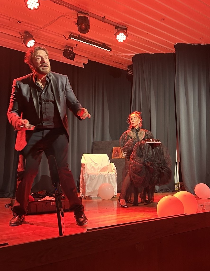 Στην κατάμεστη αίθουσα του Πολιτιστικού Οργανισμού του Δήμου του νησιού, με “οικοδεσπότη” τον αρμόδιο αντιδήμαρχο Θανάση Αγορογιάννη, οι θεατές χειροκρότησαν τον Στράτο Τζώρτζογλου και την Ρούλα Κουτρουμπέλη, που σε σκηνοθεσία Μανώλη Ιωνά και με τη μουσική και τα τραγούδια του Γιάννη Ζουγανέλη παρουσίασαν μια ξεχωριστή παράσταση. Συγγραφέας, σκηνοθέτης και ηθοποιοί συναντήθηκαν και με τη Θεατρική Ομάδα Μυκόνου, επισκέφτηκαν το εμβληματικό Πολιτιστικό Κέντρο Γρυπάρειο κι έφυγαν από το νησί με τις καλύτερες εντυπώσεις.