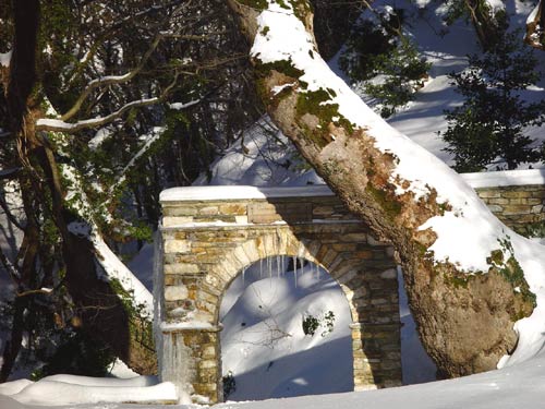 Αν κάτι έχουν να ζηλέψουν τα υπόλοιπα χωριά από την Πορταριά, είναι τα πολλά και περιποιημένα λιθόστρωτα καλντερίμια- ντυμένα αυτήν την εποχή με μια πάχνη παγωμένη, βουνίσια, που καθαρίζει το μυαλό από κάθε έγνοια.