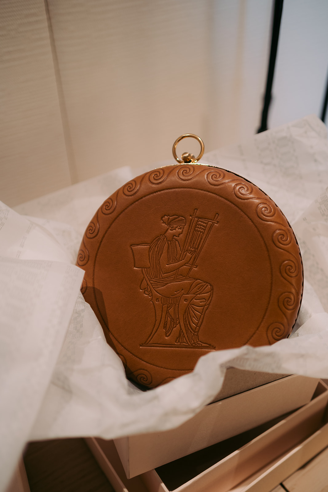 Κεντήματα και ανάγλυφες λεπτομέρειες σε ρούχα και δερμάτινα αξεσουάρ ανακαλούν σκηνές από την Οδύσσεια. Το ιστιοφόρο που ταξιδεύει προς την Ιθάκη, ο καρπός των Λωτοφάγων που σβήνει τη μνήμη, οι Σειρήνες που καλούν από τα βράχια ενώ ο Οδυσσέας, δεμένος στο κατάρτι, αντιστέκεται στο τραγούδι τους, και η Πηνελόπη στον αργαλειό της να υφαίνει υπομονετικά τον χρόνο. Στα κοσμήματα, το σπαθωτό μοτίβο επανερμηνεύεται σε γλυπτικές αλυσίδες. Πινελιές neon διατρέχουν κομμάτια από ψάθα που έχουν υφανθεί στον αργαλειό, αλλά και περίτεχνες ζώνες passementerie. Έτσι, η χειροτεχνία γίνεται αφήγηση, και η αφήγηση ένας χάρτης του ταξιδιού.