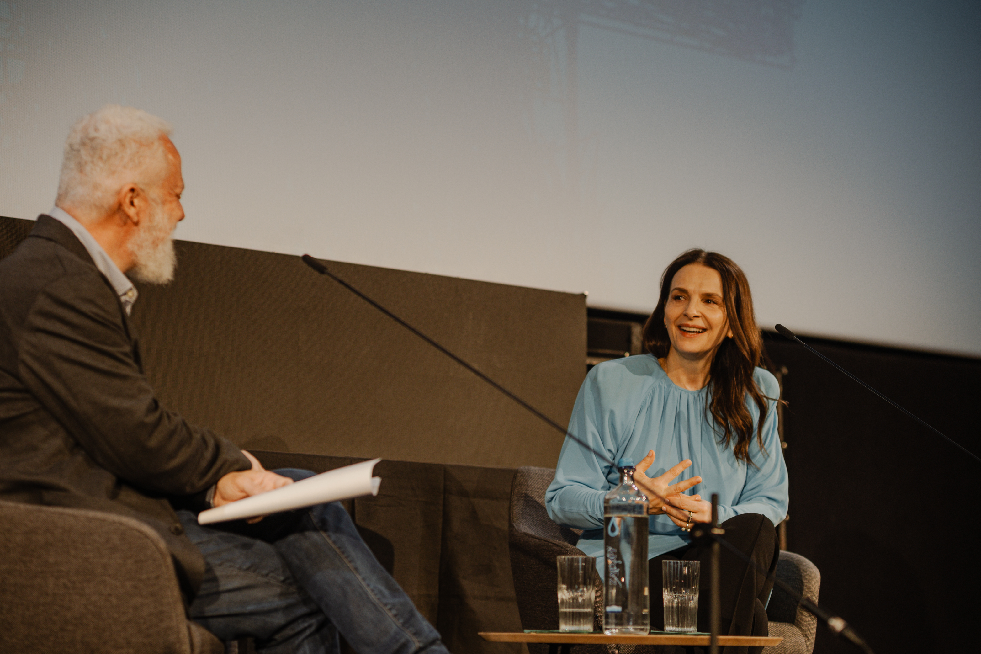 Από την πλευρά της, η Ζιλιέτ Μπινός στάθηκε στη βαθιά, συχνά σκοτεινή αλλά συγχρόνως λυτρωτική, εσωτερική διαδικασία που συνοδεύει την υποκριτική, περιγράφοντας πώς η τέχνη λειτουργεί για την ίδια ως δίοδος αυτογνωσίας. «Ως ηθοποιός καλείσαι καθημερινά να σταθείς με ειλικρίνεια όχι μόνο απέναντι στον εαυτό σου αλλά και απέναντι στην ανθρωπότητα συνολικά. Έρχεσαι αντιμέτωπη με τους δαίμονές σου, κοιτάζεις το σκοτάδι σου, το υποσυνείδητό σου. Μέσα από βιβλία διαπίστωσα πως αυτές οι πτυχές μας ταυτίζονται –σε μεγάλο βαθμό– με αυτό που αποκαλούμε θηλυκότητα. Πρόκειται για μια διαδικασία μέσα από την οποία βγαίνεις καλύτερος άνθρωπος, πιο καθαρός. Γι’ αυτό κι αγαπώ την υποκριτική, γιατί με βοηθά να κατανοήσω ποια είμαι και ποιος είναι ο λόγος που βρίσκομαι εδώ. Τέτοιου είδους συνειδητοποιήσεις συμβάλλουν στο να αποβάλλει κανείς τον φόβο και σταδιακά να ανακαλύψει τον δρόμο του».